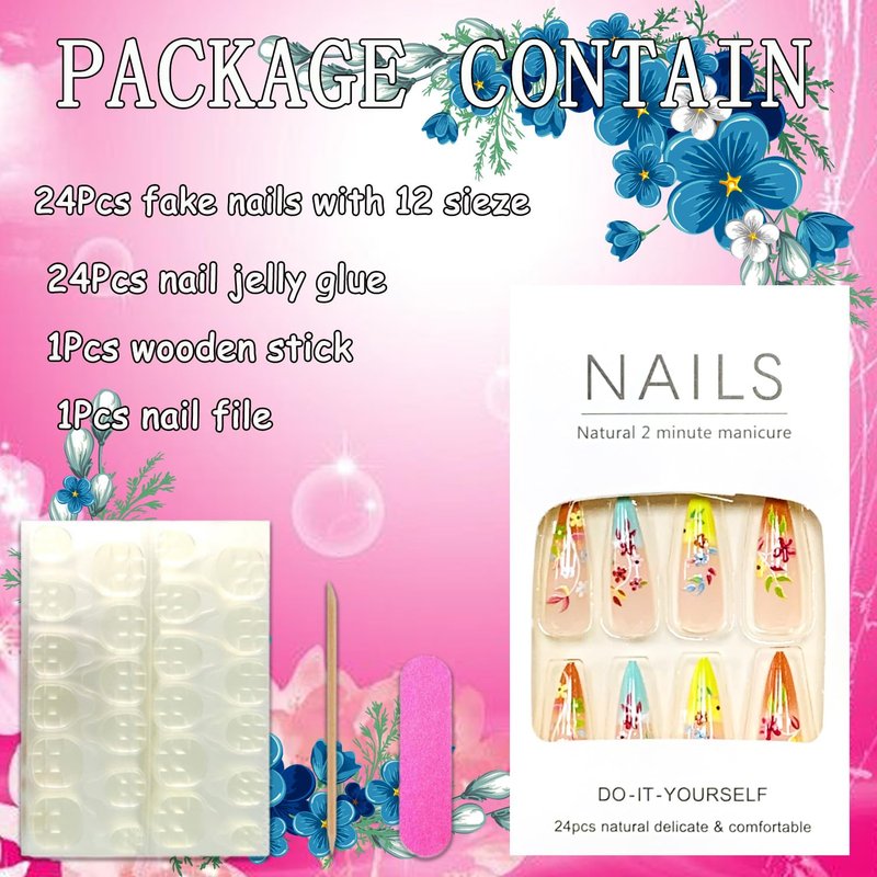 - Eye-catching Design: Beautiful almond false nails with floral patterns that will make you stand out in any occasion.