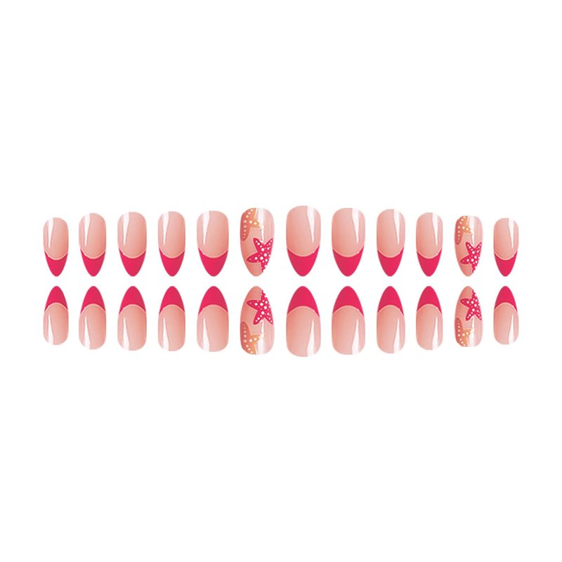 Press on Nails French Tip Fake Nails Starfish False Nails with Designs Pink Full Cover Cute Acrylic Nails Glossy Glue on Nails Summer Handmade Nails Artificial Nails for Women Girls 24Pcs