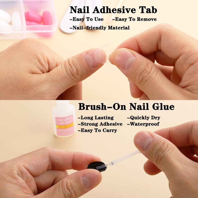 - Long Lasting:This 10g nail tips glue is designed with a applicator brush that is easier to use than the squeeze bottle. Strong adhesive, quickly dry and long lasting, perfect for sticking artificial nail tips, small nail art decorations such as rhinestone, glitters, flakes,etc. Great for DIY nails. Only 3/5 bottle filled to avoid the glue leaking under high temperature. If you want to keep the press on nails for long time, please select the nail glue to stick the press on nails.