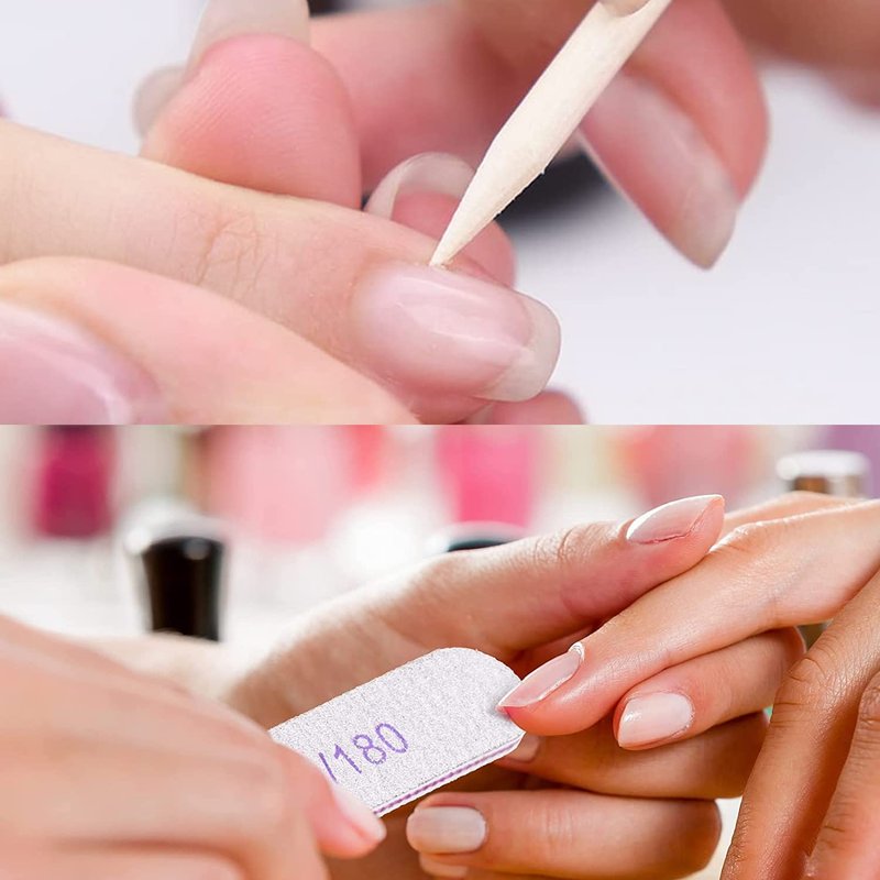 - Useful Manicure Tools: The wood nail sticks are double sided. The oblique head is used to push nail cuticles. The sharp head can clean your nails and help remove press on nails.100/180 nail file and 180/240 nail file helps to prepare your nail surface before stick press on nails and trim the press on nails to your desired length and shape.
