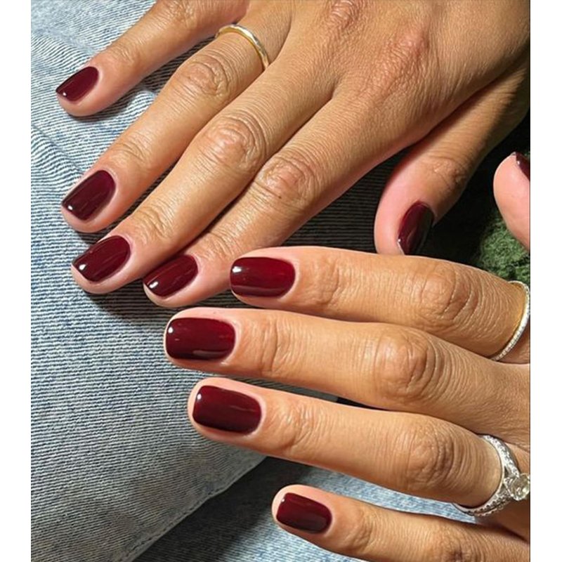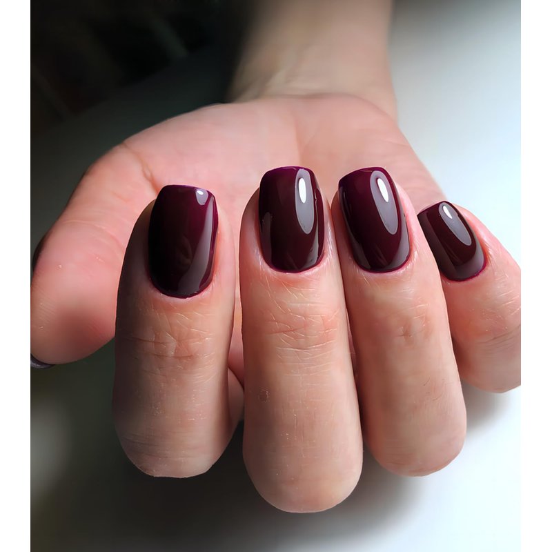 - Jelly Burgundy Short Square Nails - Jelly wine red false nails feature a glossy finish, and the real short shape provides a sleek and trendy appearance. Enhanced by a top coat gel process for long-lasting wear. Mix and match to create your unique style that complements every outfit, from everyday chic to glamorous party looks