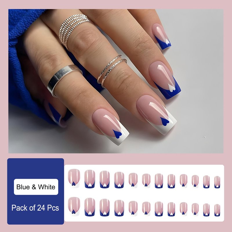 - Easy to Use - Full set blue white false nails with glue stickers can provide you with a perfect and non-destructive salon nail manicure in a few minutes at home. It's suitable for dancing, parties, dates, weddings, and other special occasions. Makes you look fashionable, and gentle and leaves a good impression.