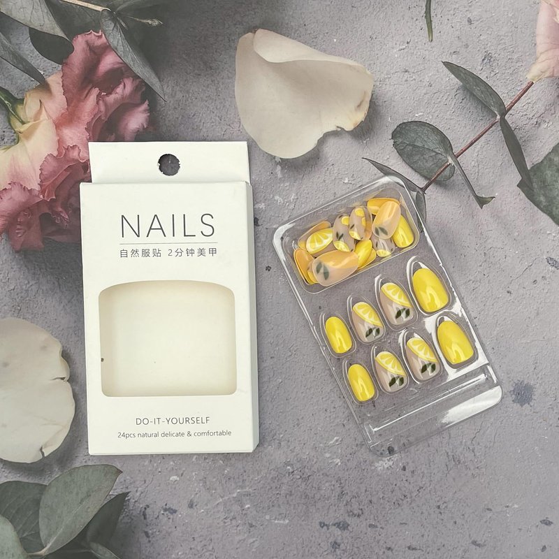 - 【Package Contains】you will get 24pcs square press on nails with lemon designs,1pc nail file, 24pcs nail jelly stickers and 1pc wooden stick for removing false nails tips. No need to buy other things, you can get the nail salon-like effect.
