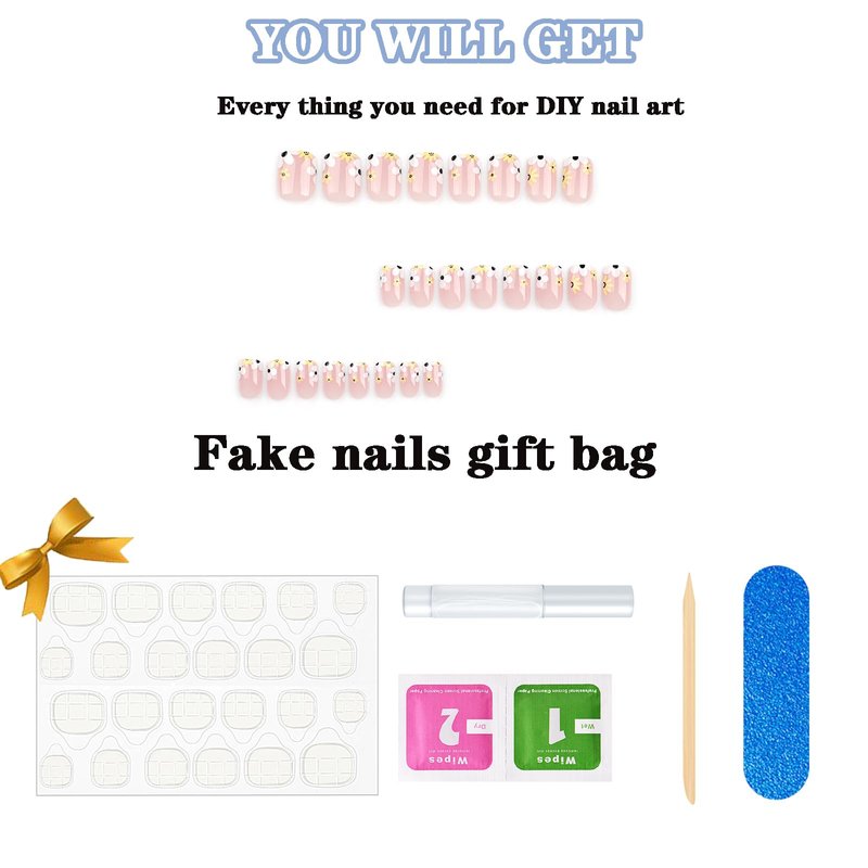 - 💕【Short press on nails product】this false nails with designs made of good acrylic ABS material, firm and not fragile or break or fade, more glossy, wouldn't hurt your nails,Softness is similar to human nails.