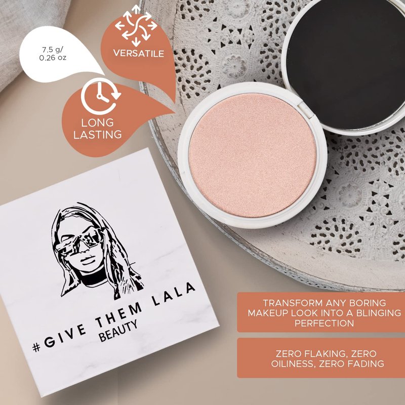 HIGHLIGHT YOUR FACE TO PERFECTION WITH THE FIRE PRESSED MAKEUP HIGHLIGHTERS BY GIVE THEM LALA! Honestly, we are not sure how people survived before highlighters came to life. Well, but now that they are here, we are obsessed, and so is Lala.DREAMY GLOW, RADIANCE & SHINE WITH THE IMPRESSIVELY PIGMENTED #GIVETHEMLALA PRESSED HIGHLIGHTERS! Designed to flatter all skin types and add a healthy radiance that makes your face look amazing, our long-lasting, highly pigmented highlighters glide across the skin to give you an epic glow that can’t go unnoticed. Extremely versatile to use on every part of your face –and why not, your body-, these gluten free and vegan highlighter powders can transform any boring makeup look into a blinging perfection.Plus, they can be applied with any of your favorite makeup tools, including brushes, sponges and even your fingers. Zero flaking, zero oiliness, zero fading. 5 STUNNING MAKEUP HIGHLIGHTER COLORS TO CHOOSE FROM- Showstopper- Power- Halo- Starr Kissed - Goddess LALA’S TIPS & TRICKS: BUILLE POWDER HIGHLIGHTER TO USE ALL OVER YOUR FACE Add this highlight to the tops of cheek bones, inner eye corners, and even across your lips with a fluffy brush, makeup sponge, or dab it in with your fingers. With a super buildable formula, you can use the exact same pressed highlighter for a soft, everyday, natural glow or a show-stopping full face glam! 100% CRUELTY-FREE SKINCARE THAT HAS NEVER BEEN TESTED ON ANIMALS One thing to keep in mind about animal-activist Lala Kent is her utter devotion to supporting animal rights. Staying true to her beliefs, Give Them Lala Skin is a proud partner of PETA and Leaping Bunny while every single product is 100% Cruelty-Free. DISCOVER A UNIQUE, USA-MADE BEAUTY & SKINCARE LINE DEVELOPED BY LALA KENT. LET’S SPREAD THE #GIVETHEMLALA VIBES. ORDER YOURS TODAY!