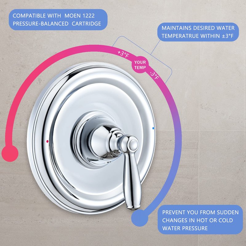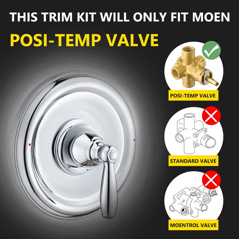 Pressure Balancing Tub and Shower Trim Kit, Compatible with Moen Posi-Temp Valve, Chrome