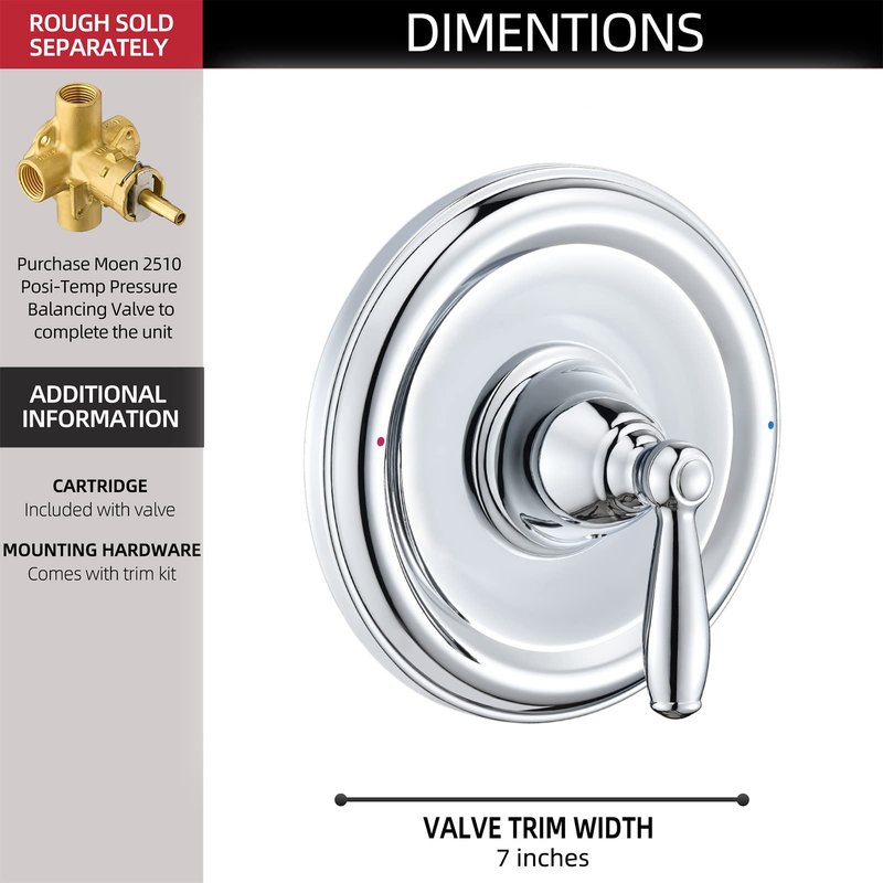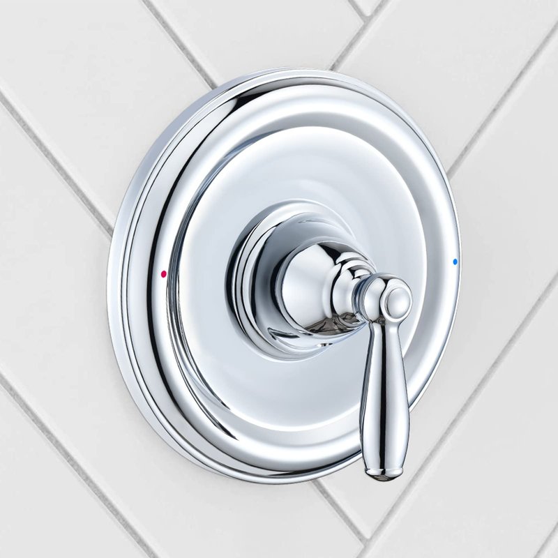 Customize your showering experience with this pressure-balancing valve trim. PRESSURE BALANCING: Helps maintain water pressure and temperature even when other water sources in the house are in use. The shower becomes your private sanctuary where body sprays and shower heads work in perfect harmony. Chrome finish is highly reflective for a mirror-like look that works with any decorating style. Made of solid brass, this trim kit will provide years of excellent performance. Its rounded silhouette complements a wide variety of decors.