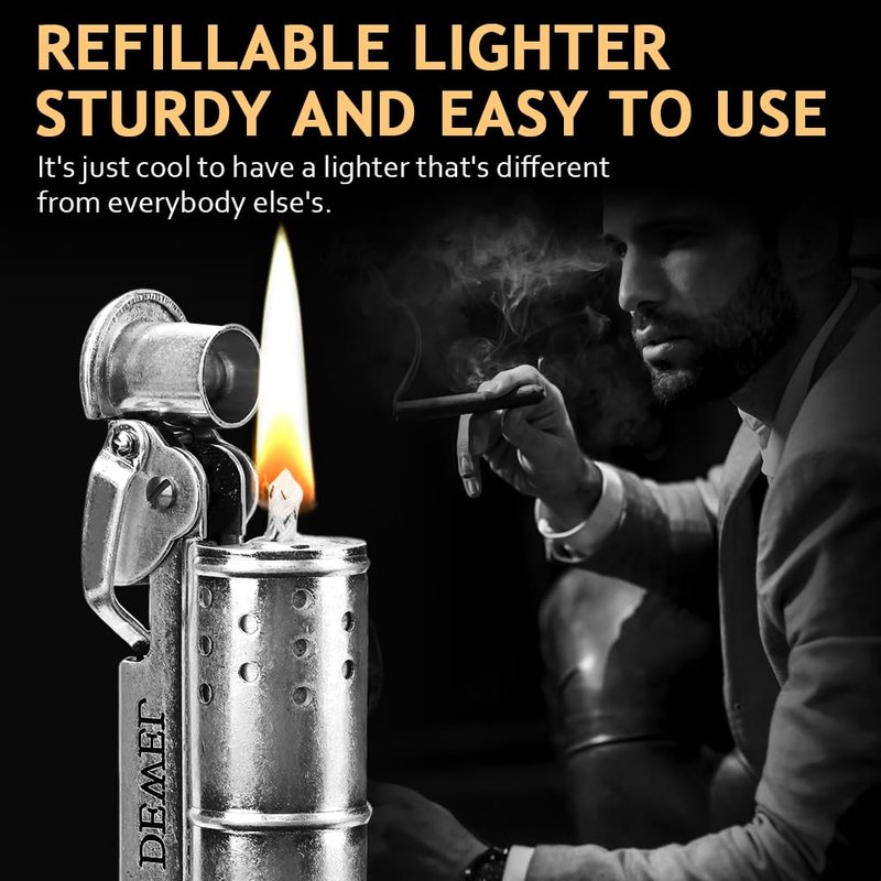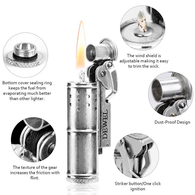 - 🔥🔥🔥【High-quality】The classic brass lighter is spring-loaded, so you get a positive and continuous spark each time; The wick cover protects the wick and helps to prevent fuel evaporation.---Fluid Refillable, comes with extra flints and parts. This antique lighter is reusable forever matches.