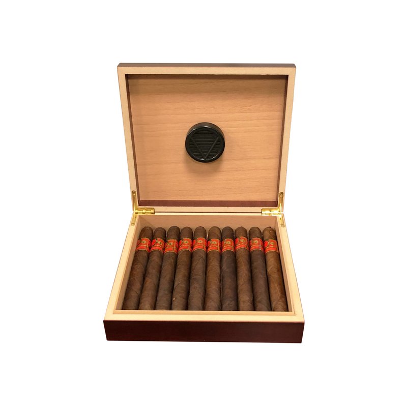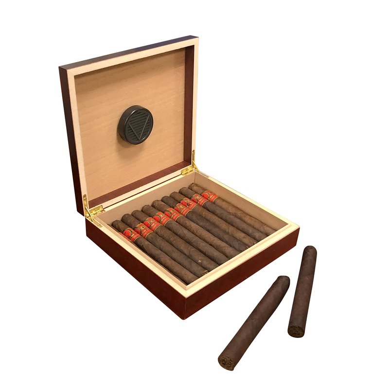 This Cherry cedar lined travel humidor will maintain the freshness & taste of your favorite cigars on the go. The Chateau's compact design allows you to easily store it away when traveling. Designed to maintain the perfect 70%-80% humidity. The interior has a removable humidifier that can be filled with distilled water so you can be sure your cigars are kept in exactly the right environment. Holds up to 20 cigars.