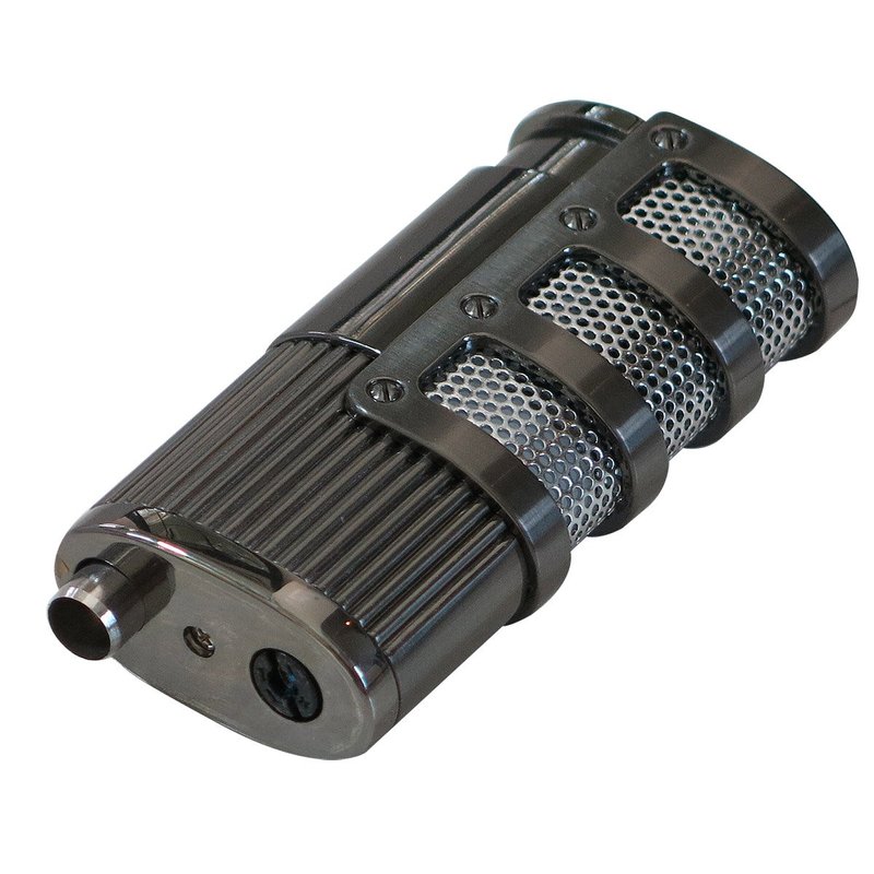 The Supernova butane triple torch lighter is a fresh new design in contemporary lighters that provide its user with an ultra-hot flame to light cigars in a snap. Each Supernova features an on board punch cutter blade for cutting cigars. This lighter has an adjustable flame height and is available in two different finishes: Black/Chrome and Gunmetal/Chrome.