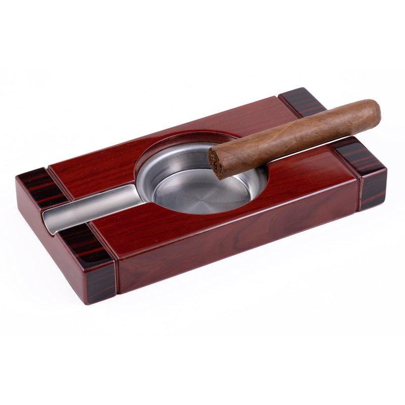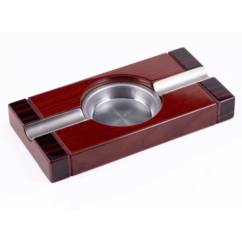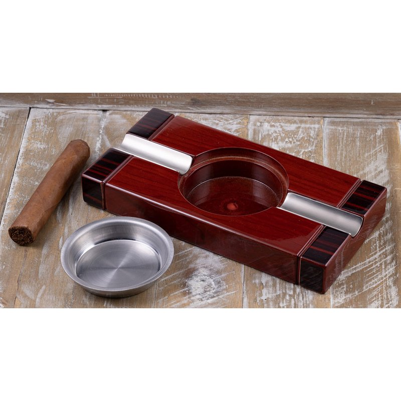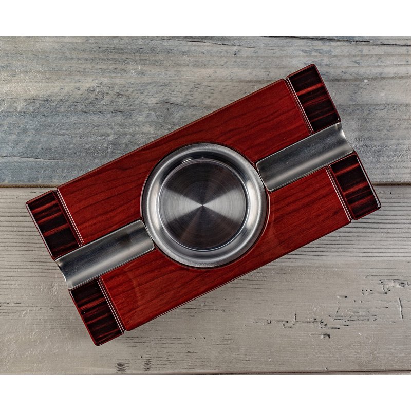 Rich High Gloss Two-Tone Cherry Finish, Accented with Stainless Steel Cigar Beds, Stainless Steel Ash Reservoir, 8" L x 4" W x 1" H