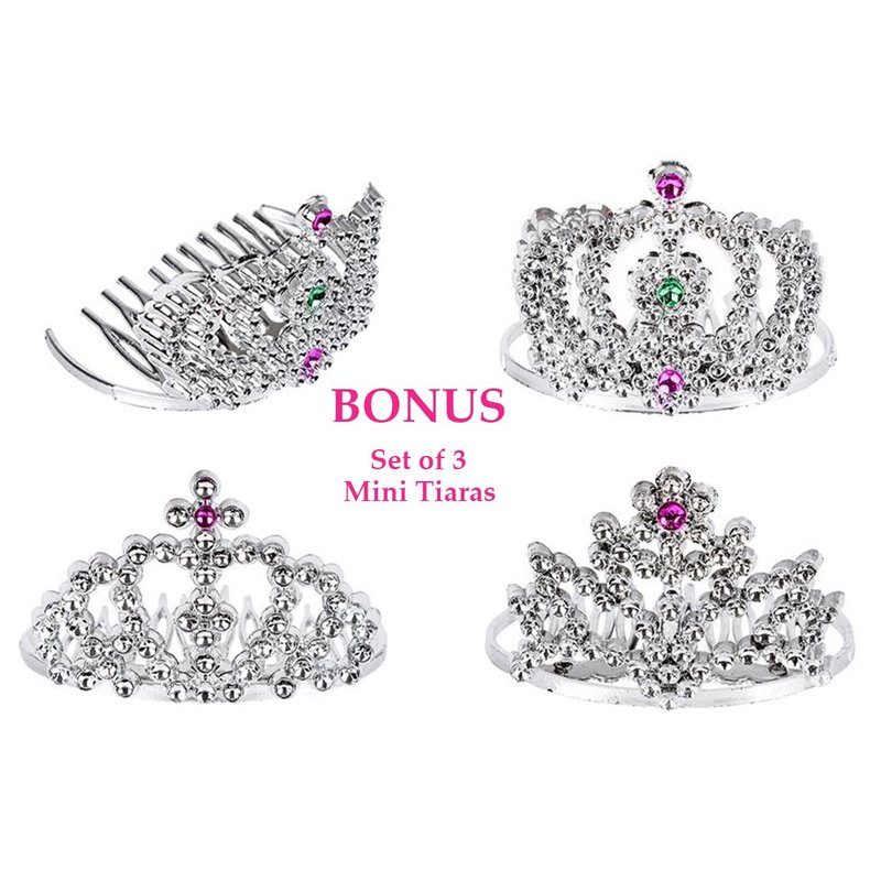 Pretend Play for Girls, 21 Pieces Vanity Set w/ Mirror +3 Free Tiaras, Beauty Hair Salon Kit, Play Makeup Toys for 3 Years Old, No Chemicals, No BPA, Best Christmas and Birthday Gift for Preschoolers