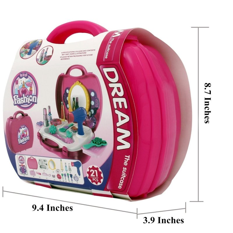 If your little lady loves going to the salon, why not bring it to her with the combs, hair accessories and blow dryer? You can add a touch of glamour to any playroom or bedroom with our 21 pieces set!