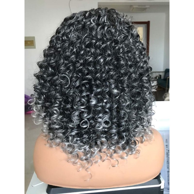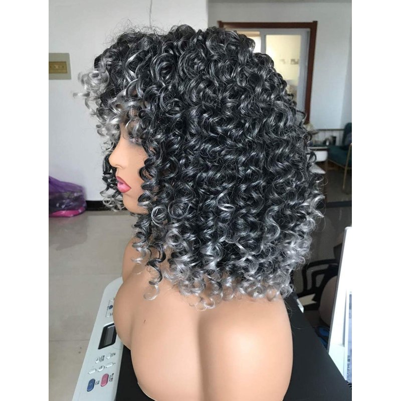 PRETTIEST Afro Curly Wigs with Bangs for Black Women Kinky Curly Wig for Daily Wear (Ombre Grey)