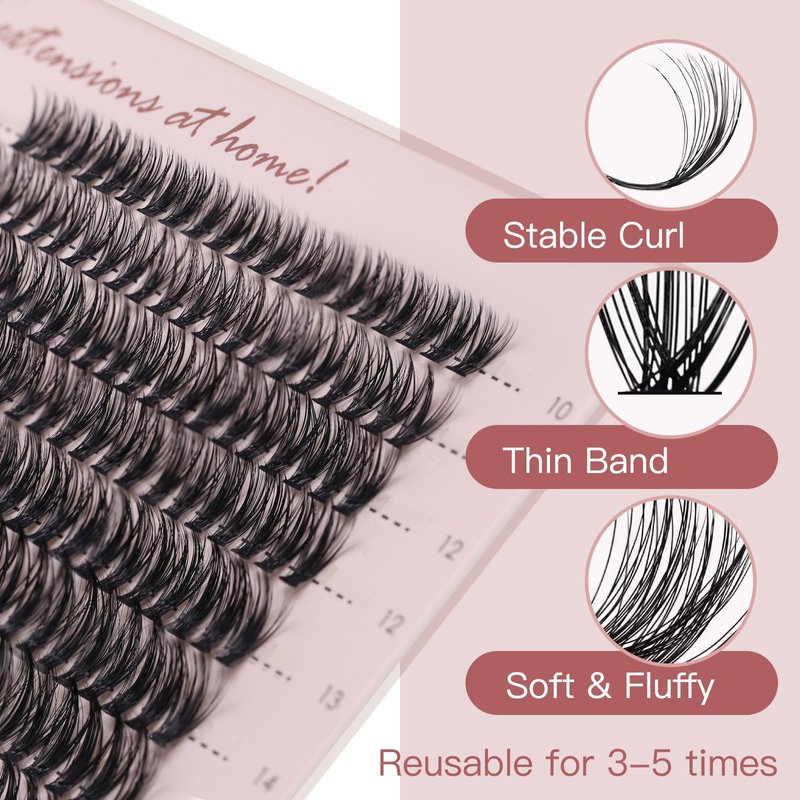- Highly Cost-effective 360 Pcs Clusters: 360 pcs lash clusters can be used more than 36 times and can be reapplied 3-5 times with proper care. Applying lashes takes skill and practice, and a sufficient number of lashes will allow a novice to try and learn to apply lashes successfully.