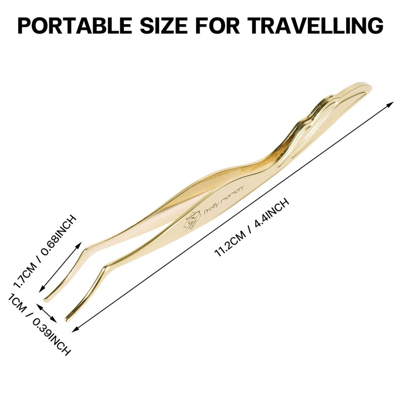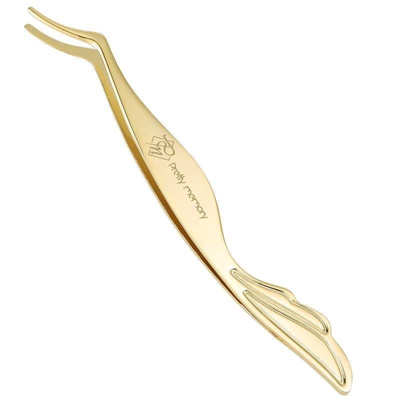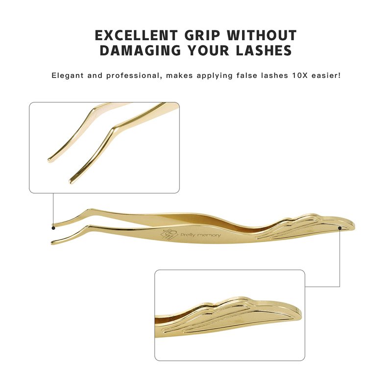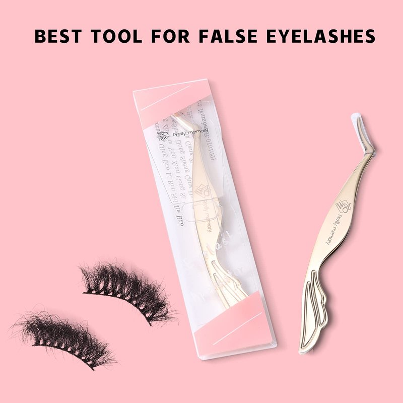 Pretty memory DIY Eyelash Applicator Tool, Curved Eyelash Tweezers for False Lashes, Lash Applicator for Easy Lashes Application and Removal, Gold