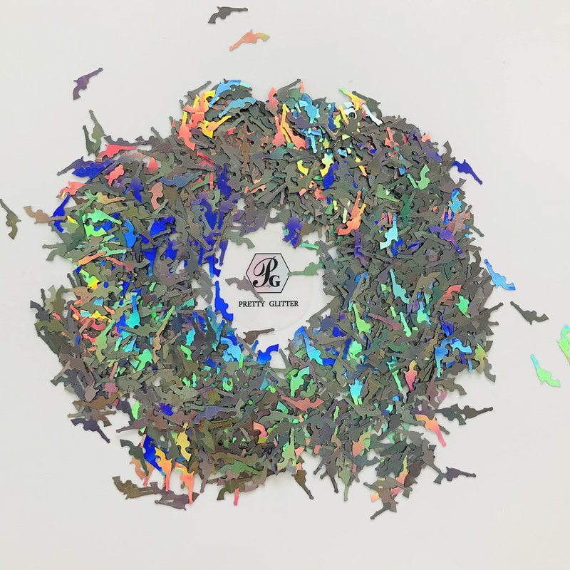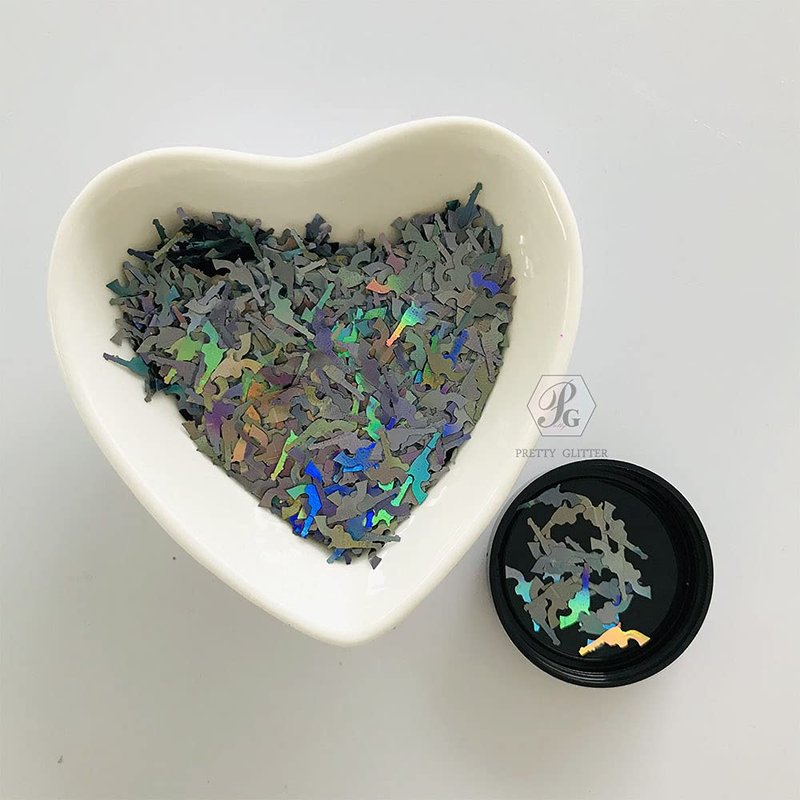 PrettyG 10 Grams/Pack -12mm Gun Shape Holographic Glitter Sequins - Festival Rave Beauty Makeup Face Body Nail Art Decoration LB1002