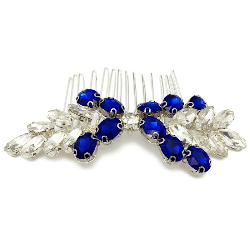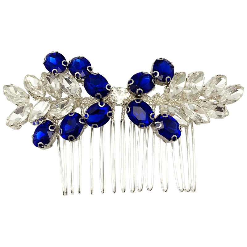 - Color: Royal blue & clear beads, silver vine & comb