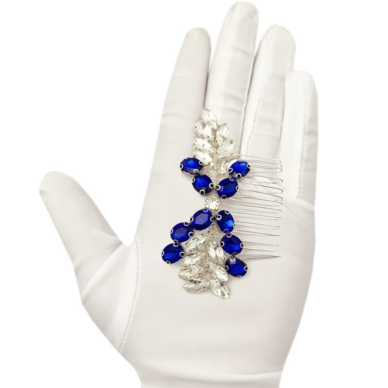 - 【Size】 Royal blue crystal wedding hair accessories is with size 3.5" x 2.2" (Length x Height), the length of the alloy comb is approx. 1", free size for women and girls