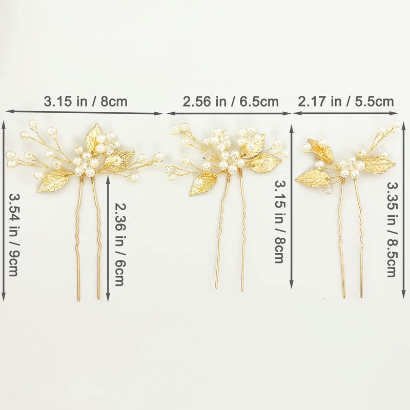 - 【Size】 Wedding pearl hair pieces are in 3 sizes (2.17 in * 3.35 in, 2.56 in * 3.15 in, 3.15 in * 3.54 in), the length of pin is approx. 2.36 in, free size for women and girls