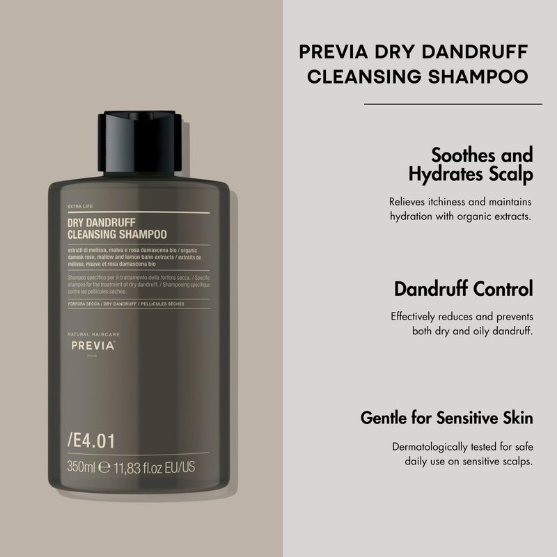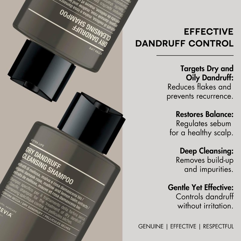 - Product Overview: PREVIA Extra Life Dry Dandruff Cleansing Shampoo is designed to prevent and treat dry dandruff. It effectively balances the scalp, reducing oiliness and soothing irritation. With up to 98% natural ingredients, it’s a gentle yet effective way to maintain scalp health.