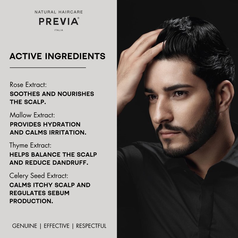 PREVIA Extra Life Dry Dandruff Cleansing Shampoo | Organic Rose, Lemon & Melissa Extracts | Vegan, Cruelty-Free, Dermatologically Tested | Scalp Balancing & Moisturizing Shampoo | 11.83 oz