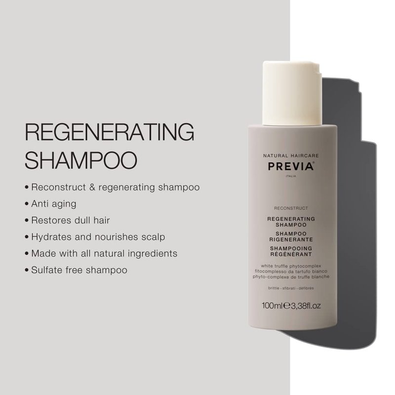PREVIA Reconstruct Regenerating Shampoo - Damaged Hair Shampoo with White Truffle - Moisturizing Shampoo for Brittle Hair (3.38 oz)