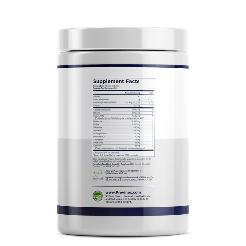 Previnex Muscle Health Plus: Creatine monohydrate, myHMB, BCAA 2:1:1, Essential Amino Acids, Astragin. Complete & Comprehensive Formula to Support Muscle Health.