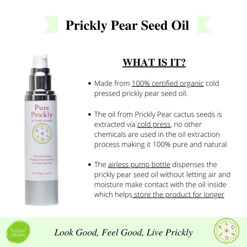 - Each bottle of Pure Prickly is carefully crafted to deliver the highest quality product. The pure and organic oil is collected one droplet at a time from the Prickly Pear seeds and stored in ultra-premium airless bottles to ensure the best possible results.