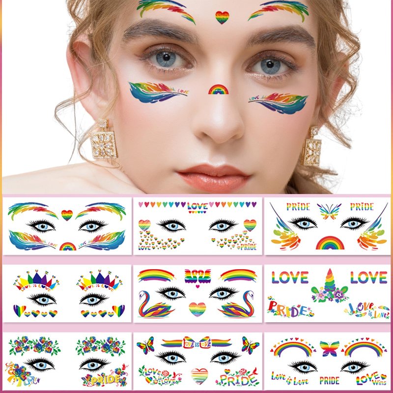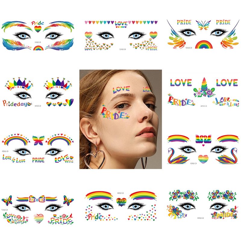 - γππππ€ππ π ππ¨π§πππ’π§γA pack contains 10 sheets delicate Pride Day Face Tattoo Stickers.The vivid rainbow symbol will help you shine in the crowd.
