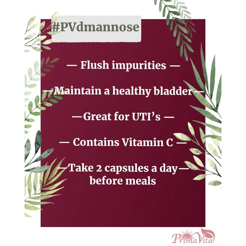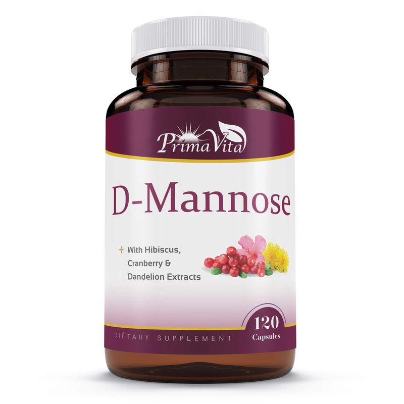 PrimaVita D-Mannose Supplement 800mg, D-Mannose Capsule with Cranberry, Dandelion Extract and Vitamin C, Support Overall Immunity, 120 Vegan Capsule