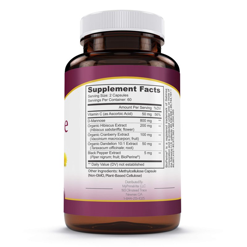 - SUPPORTS IMMUNE AND URINARY TRACT SYSTEMS: Our D-Mannose supplement is the combination of d-mannose, cranberry, and dandelion extract along with hibiscus and vitamin c, per serving of 2 capsules. This dietary supplement helps to flush impurities and detox body.