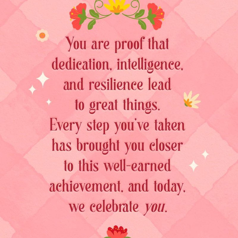 - Inside Message: You are proof that dedication, intelligence, and resilience lead to great things. Every step you’ve taken has brought you closer to this well-earned achievement, and today, we celebrate you. We're so proud of you and we know your future holds endless possibilities.
