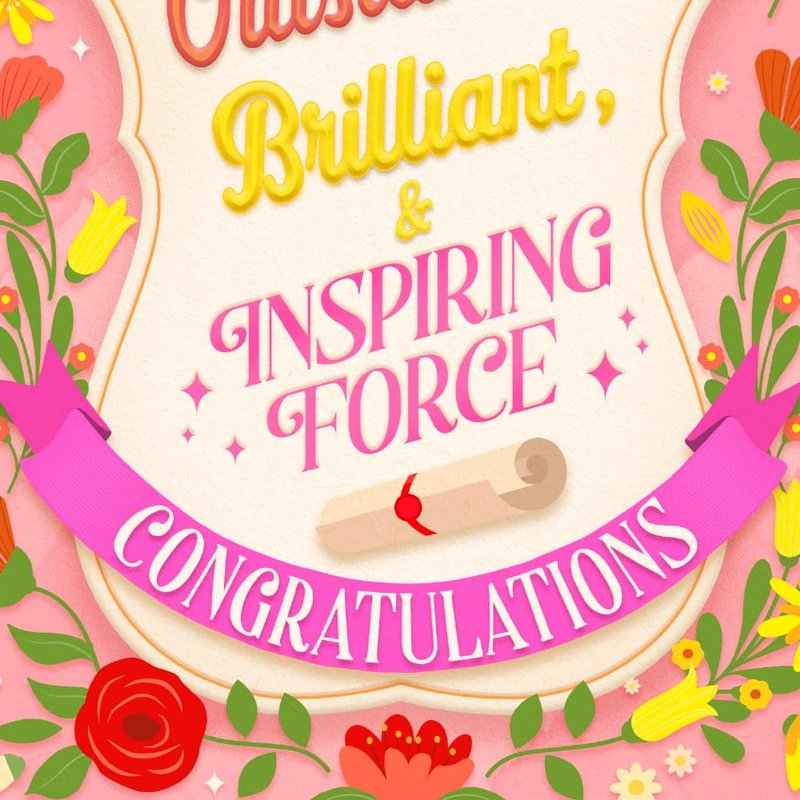 - Front Message: Here’s to you, granddaughter, an Outstanding, Brilliant, and inspiring force. Congratulations!