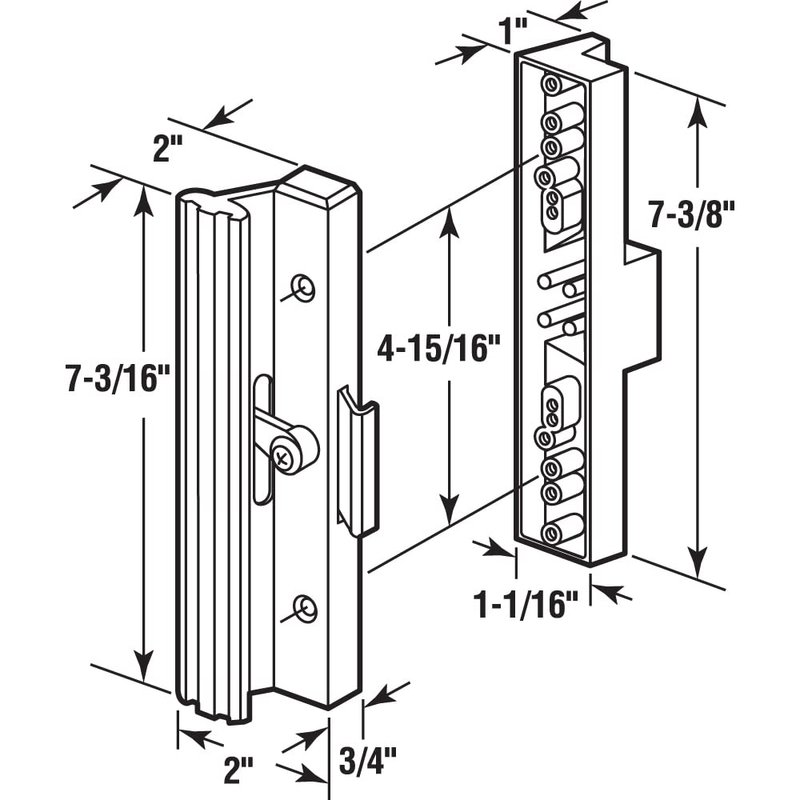 - DIMENSIONS – The sliding patio door handle is a 2 inch tall inside handle; the clamp of the sliding door handle set has a 1/4 inch profile and 1/2 inch projection when in locked position