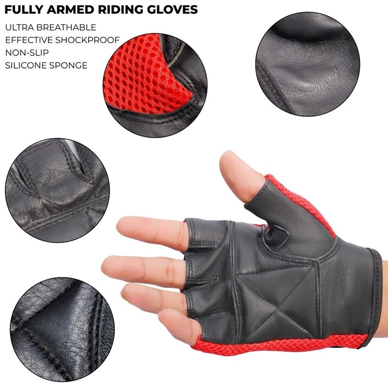 - Leather And Mesh Fingerless Gloves Padded Palm For Extra Comfort