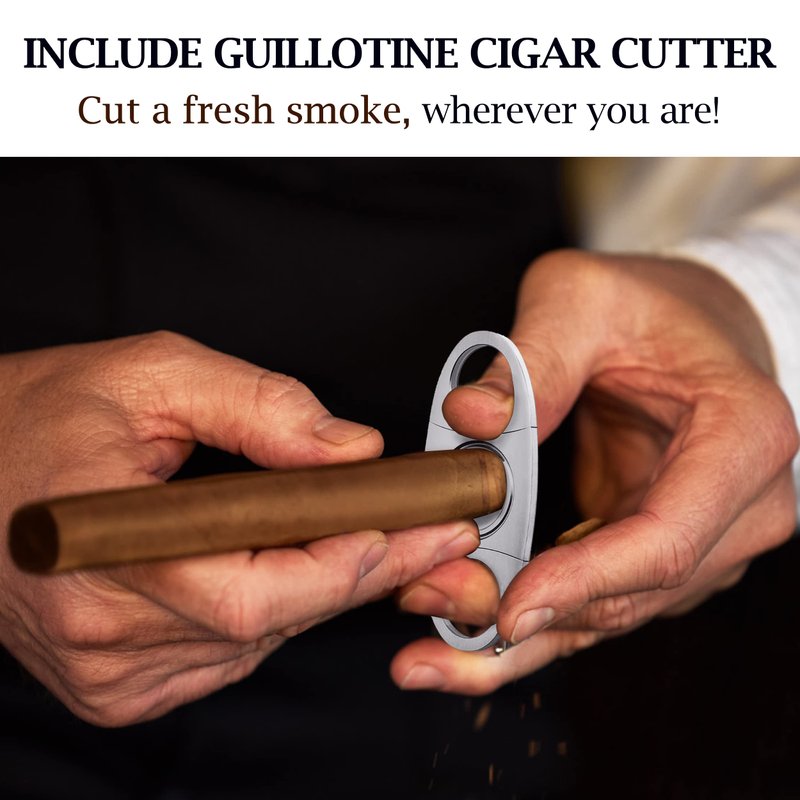 - 【 GIFT FOR CIGAR AFICIONADO】: This cigar travel case includes a stainless steel guillotine cigar cutter. Are you worried about Christmas gifts, Father's Day gifts, Valentine's Day gifts, and Birthday gifts? Give this cigar gift box to your father, husband, boyfriend, men or cigar aficionados friends and they will be very happy.