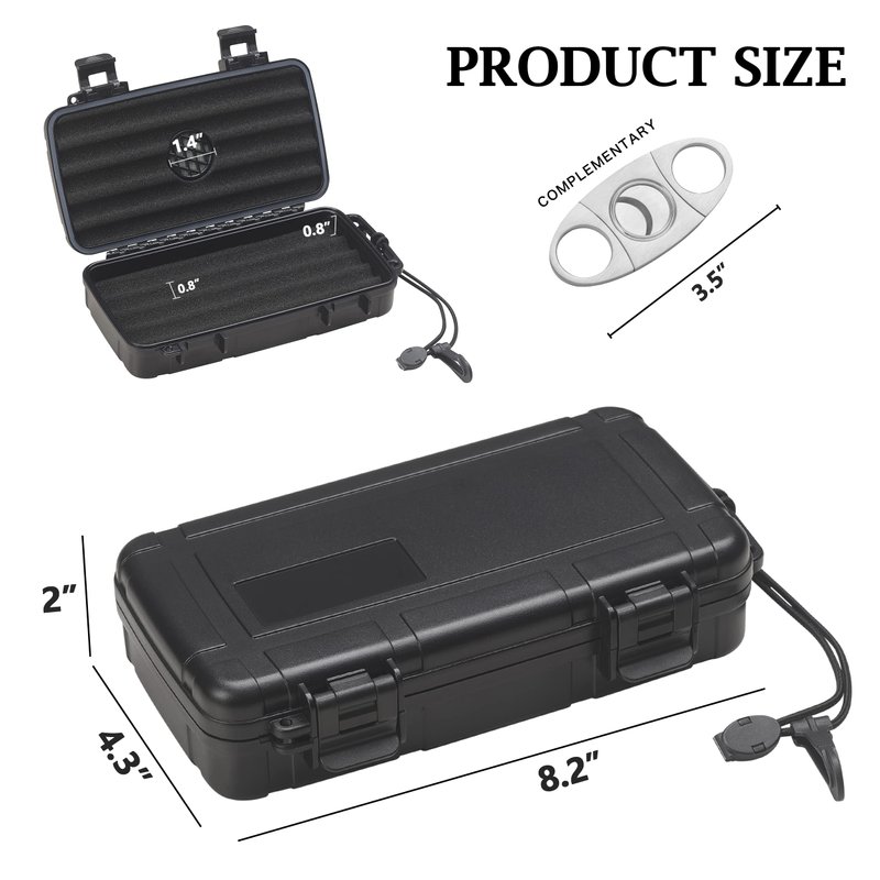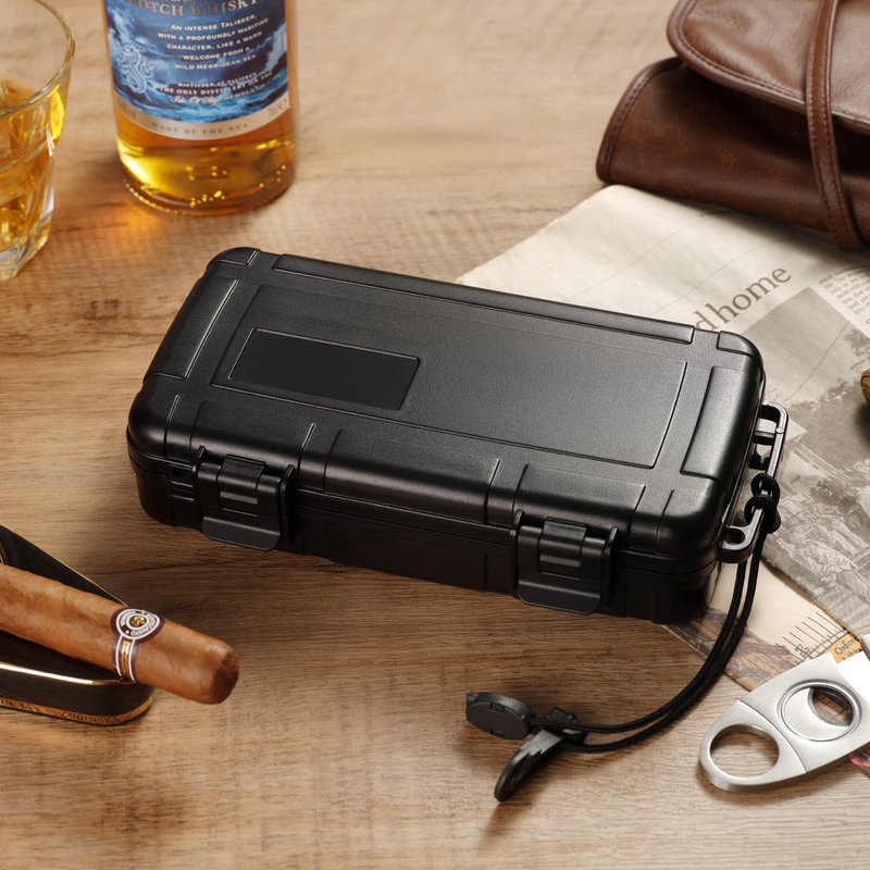 - 【 PROTECT YOUR CIGAR SAFE】: The travel cigar box is made of sturdy ABS material. It is designed with U-shaped foam inside for crushproof and cushion that can keep your precious cigars safe, and remains undamaged even when driving or flighting are bumpy. With 2 sturdy latches ensure the humidor is airtight