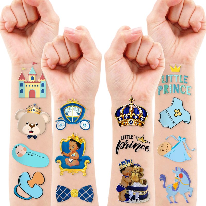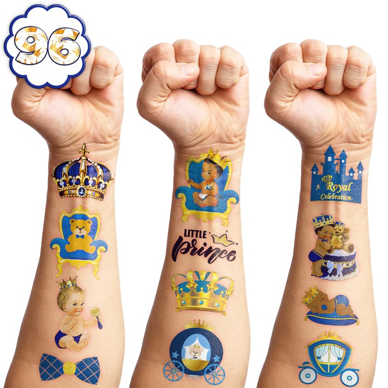Prince Temporary Tattoos Birthday Party Supplies Favors Decorations Baby Shower Prince Little Boy Royal Blue Super Cute 92PCS Tattoos Stickers for Kids Boys Girls Classroom Rewards Gifts Ideal