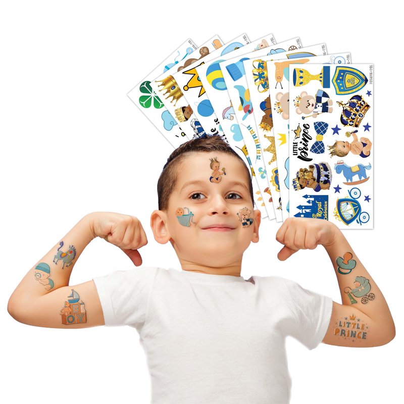 - 🤴【IDEAL TATTOOS FOR THEMED ROYAL PRINCE TURKEY DECOR】: This set of temporary ROYAL PRINCE-themed tattoo stickers comprises 8 sheets in total, featuring a total of 92PCS adorable, distinct designs. They are excellent for distributing as party favors and small gifts with a ROYAL PRINCE theme for holidays. Each sheet measures 6.1 * 3.1 inches, making them suitable for kids of all sizes.