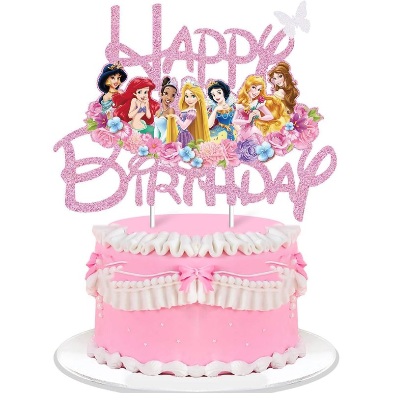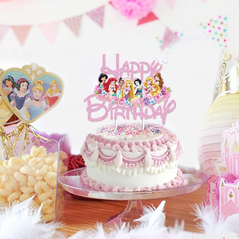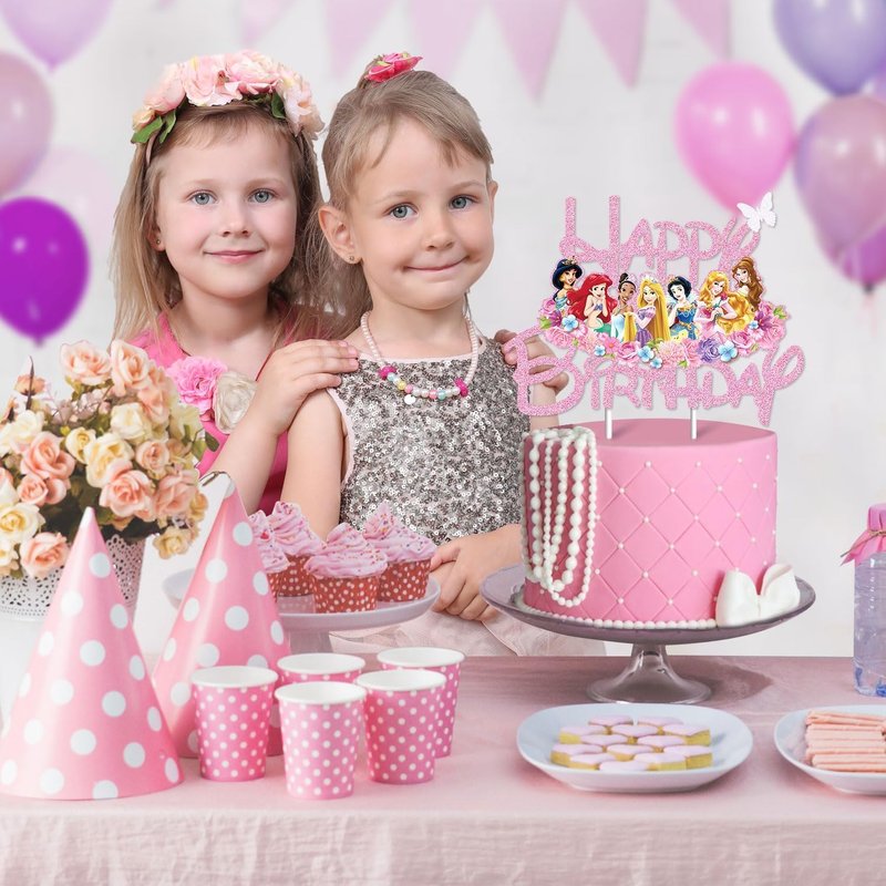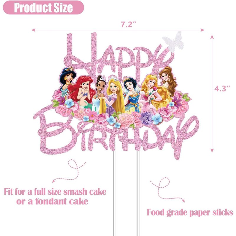 - 💐Unique Design - Pink Princess happy birthday cake topper is printed with lovely funny Princess figures, glittery design gives a high-end feeling, which will attract everyone's attention on the party.