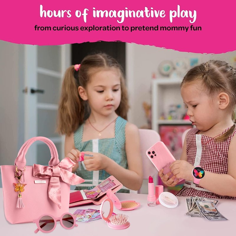 Princess Pretend Play Girls Purse & Toddler Girl Toys Make Up Set I Kids Purse & Fake Makeup Toys I Little Girl Purse with Accessories Phone, Wallet, Play Makeup & More I Toys for 3+ Year Old Girls