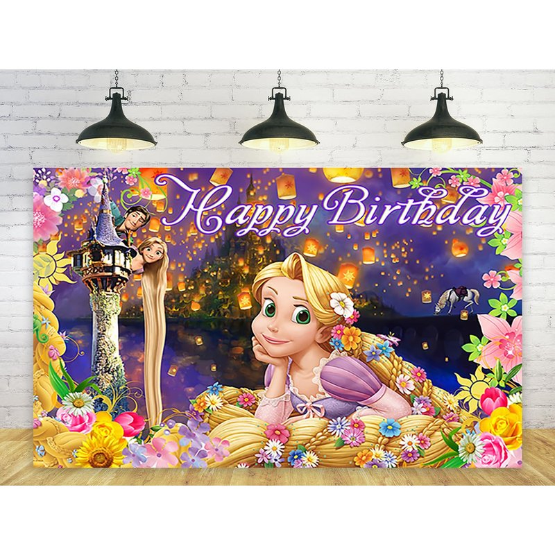 Princess Rapunzel Backdrop for Birthday Party Decorations Yellow Background for Party Cake Table Decorations Tangled Theme Banner 5x3ft