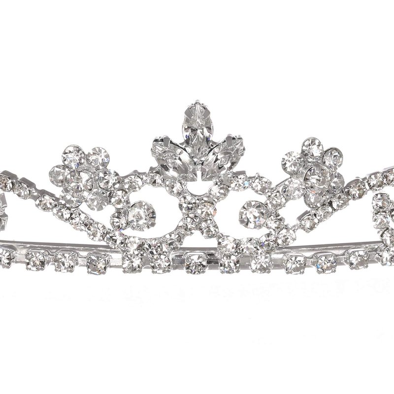 Princess Rhinestones Crystal Flower Bridal Wedding Prom Tiara Crown (Clear Crystals Silver Plated)