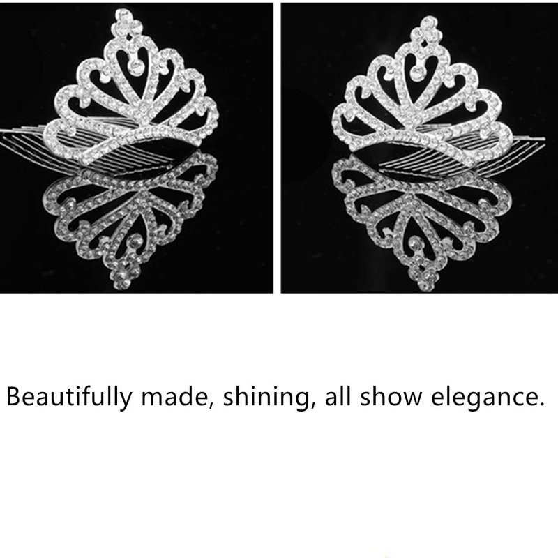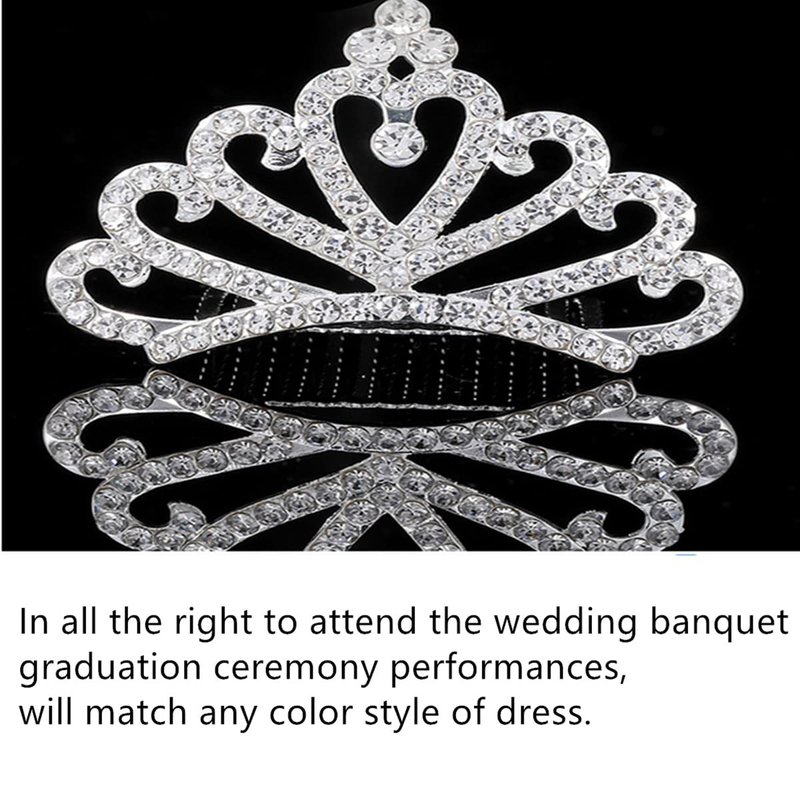 Princess Tiara Comb, 2PCS Mini Crown Rhinestone Hair Comb, Flower Girls Crystal Rhinestone Crown Hair Comb Hair Accessories(silver)