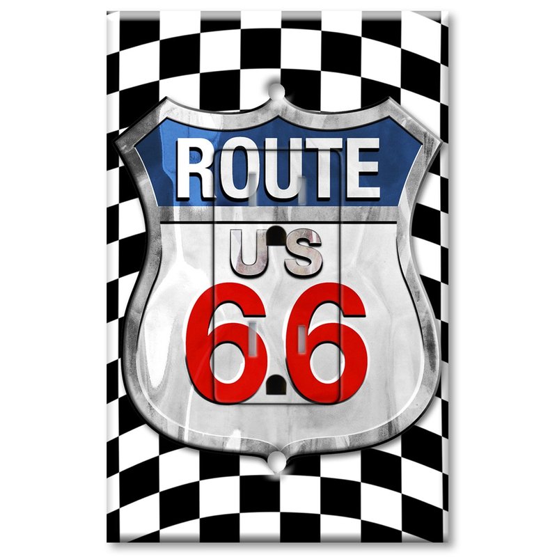 Printed Electrical Outlet with matching Wall Plate - Checkered Flag Route 66