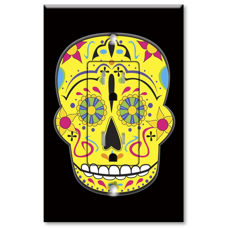 Printed Electrical Outlet with matching Wall Plate - Yellow Sugar Skull