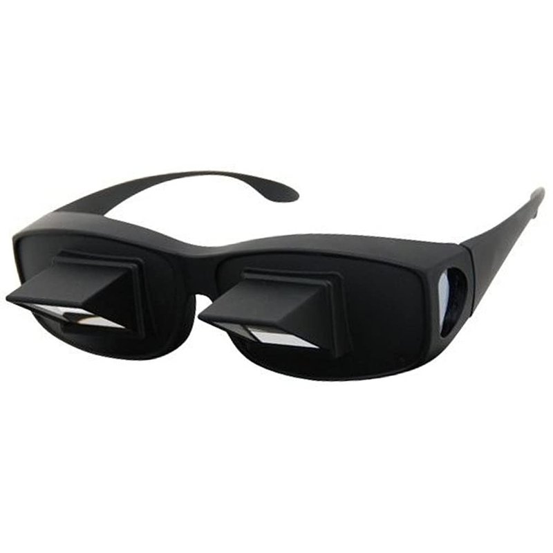 Prism Glasses are optical glasses that allow you to read in bed or watch TV while lying flat on your back. The perfect solution for those with limited mobility, these unique prism glasses are great for preventing neck cramps or eye strain. The Prism Glasses turn your view to a downward 90 degree angle, eliminating the need for head movement. Lie on your back with your head on a pillow, and you'll be able to read a book resting on your chest.