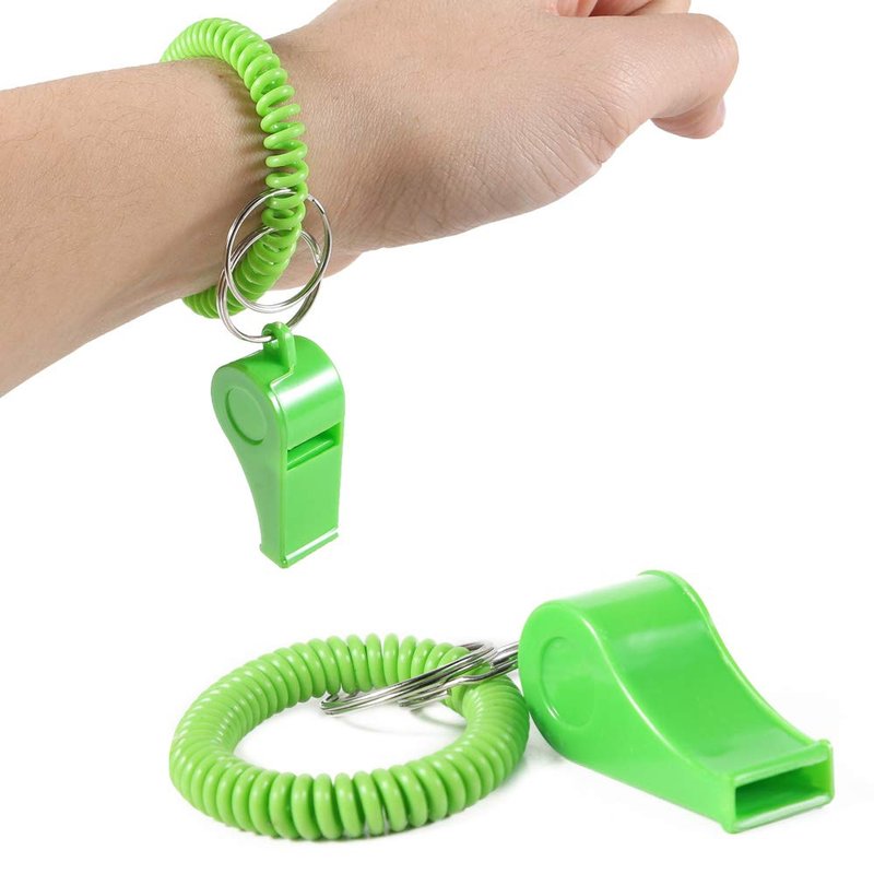 - 3 IN 1 DESIGN - One purchase to get spiral wristbands + wistles + key rings. Come in a pack of 2 dozen, enough for handouts or giveaways.