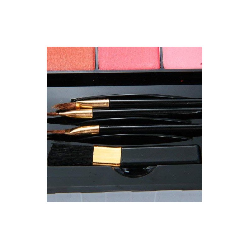 - 6 Lip Colors, combination of shimmer (just a very little hint), pearl and matte effect. 3 Blush and Contours, the blush colors are all beautiful and can compliment any skin tone. Including 5 brushes, 2 puffes and a small mirror.